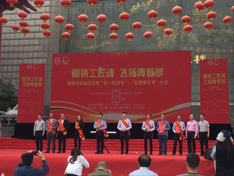 4月27日下午3點,綿陽市游仙區(qū)慶祝“五一勞動節(jié)”、“五四青年節(jié)”大會在越王樓廣場舉行。我公司新材料研發(fā)部部長黃杰榮獲綿陽市游仙區(qū)2017年“工人先鋒”稱號,并在本次大會上受到表彰。