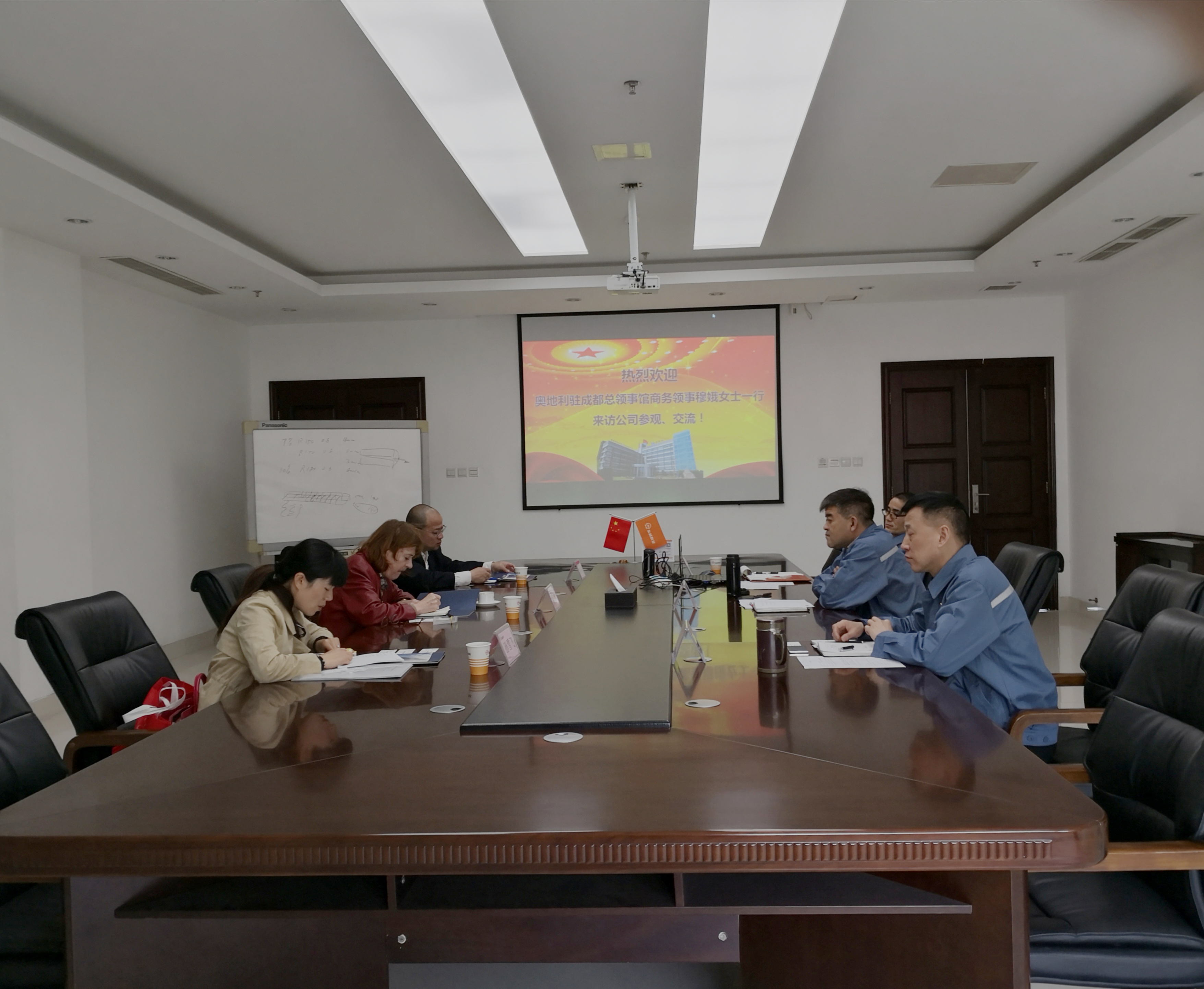 3月28日上午,奧地利駐成都總領事館商務處商務領事穆娥女士及其助理孫雪飛來我公司訪問,綿陽市外事辦調研員謝銘隨訪。董事長于少波和總經辦主任張黎接待了來賓。